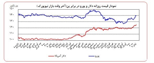 به نرخ های پایان وقت بازار نیویورک، در هفته گذشته هر یورو در محدوده 1.1276-1.0929 دلار و هر پوند در محدوده 1.5366-1.5201 دلار در نوسان بود. همچنین دلار نیز در دامنه 125.62-124.11 ین متغییر بود.