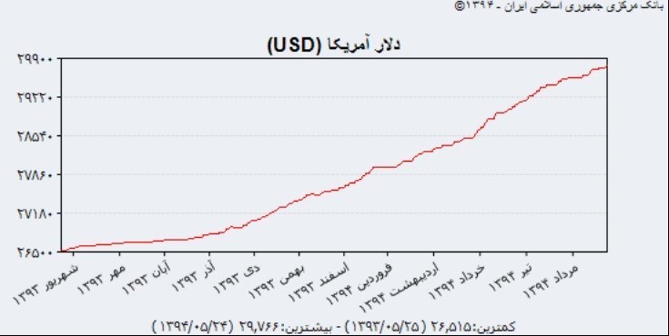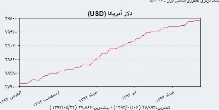 نمودار تغییرات دلار بانکی از ابتدای 94 تاکنون؛