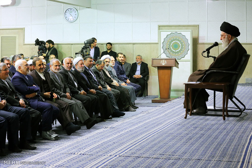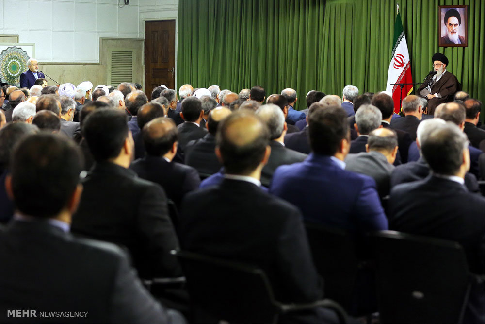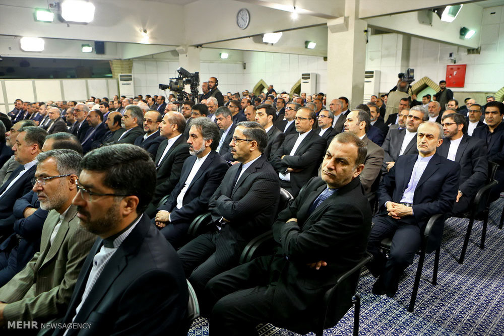اتاق خبر -وزیر امور خارجه و مدیران این وزارتخانه، سفیران و مسئولان نمایندگیهای جمهوری اسلامی ایران در خارج از کشور صبح امروز یکشنبه با حضرت آیتالله خامنهای رهبر معظم انقلاب اسلامی دیدار کردند.