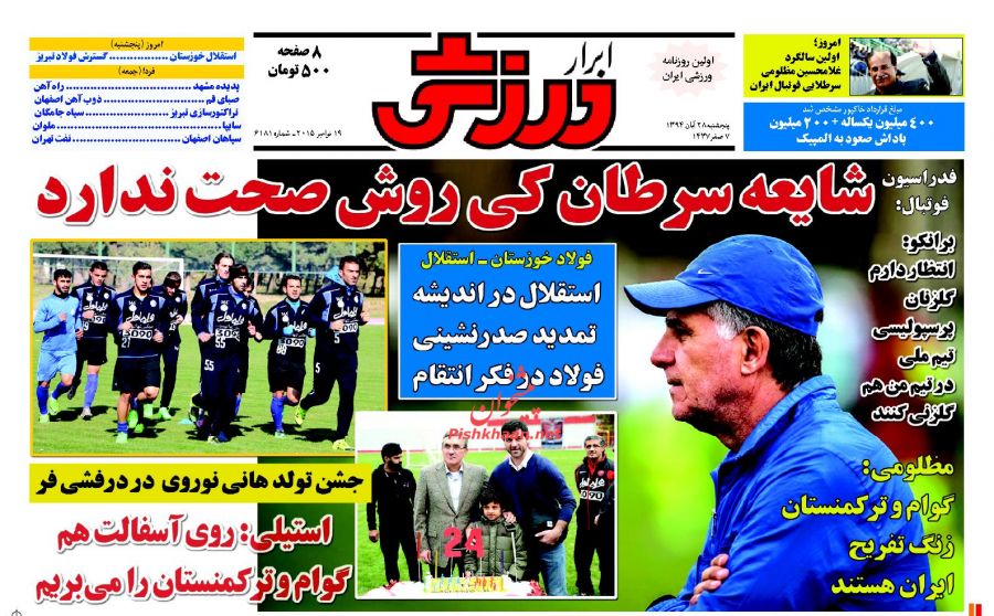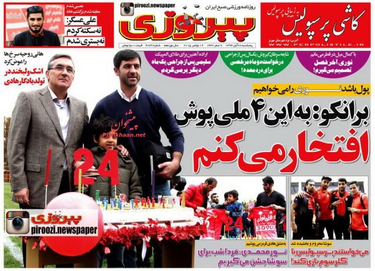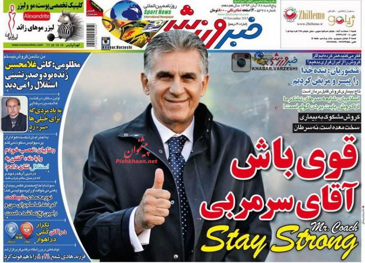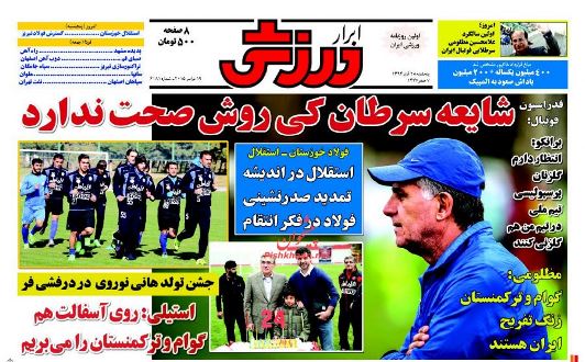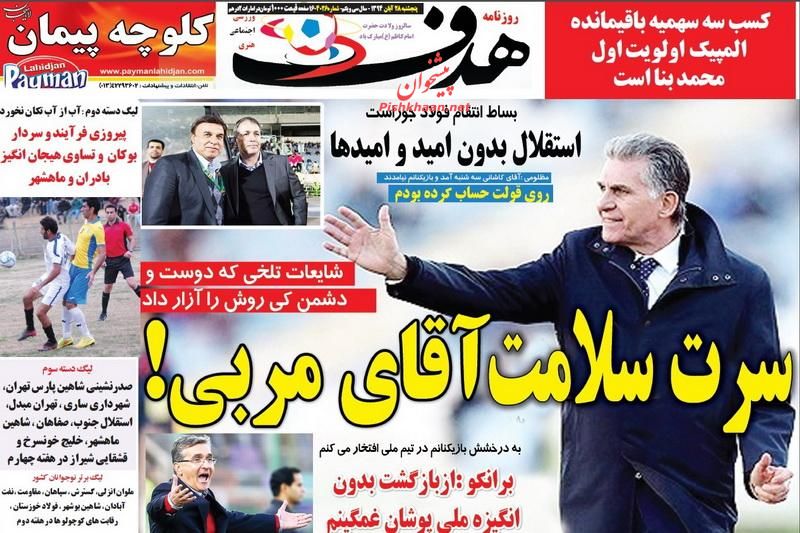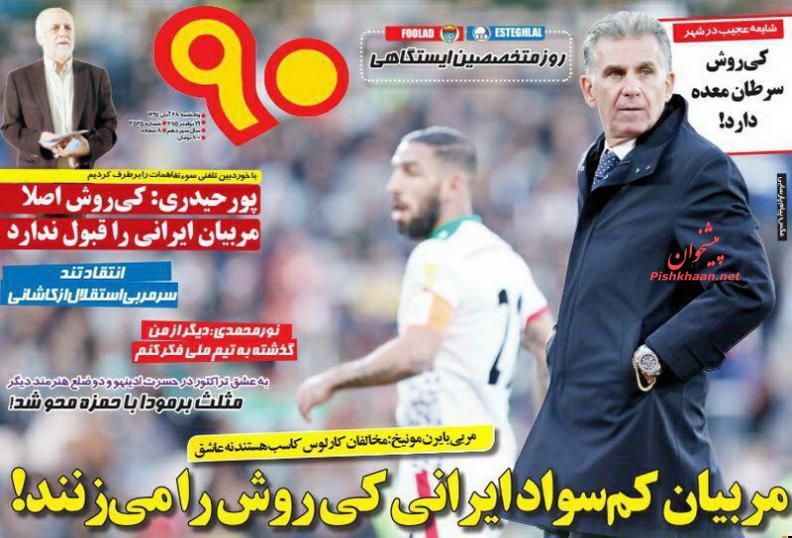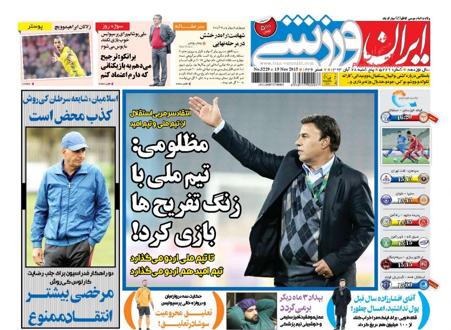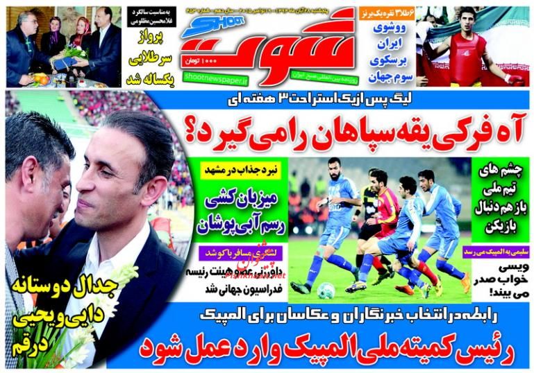 صفحه نخست روزنامه های ورزشی ایران 28 آبان