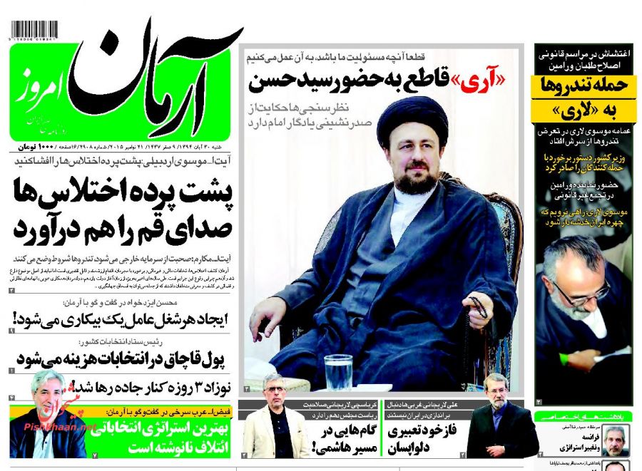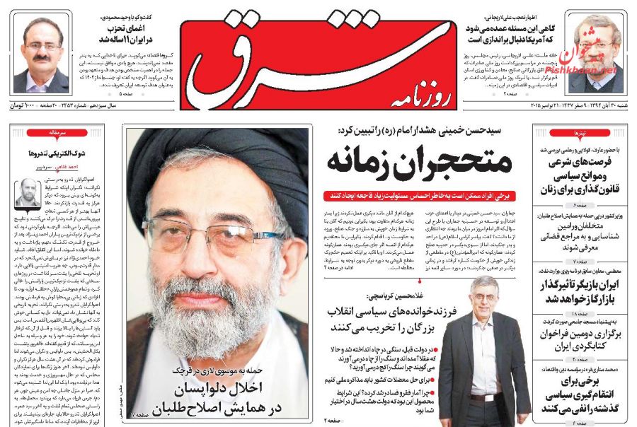 صفحه نخست روزنامه های سیاسی ایران شنبه 30 آبان