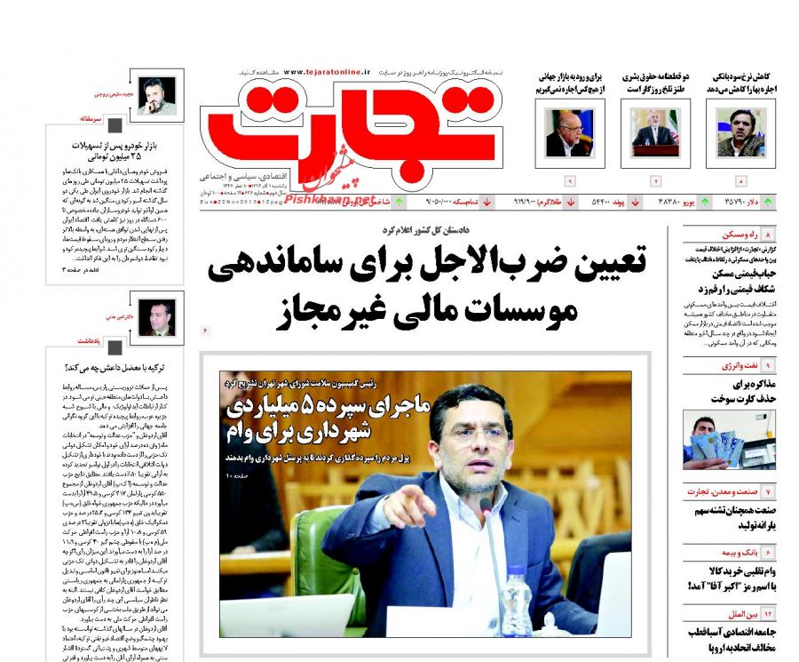 صفحه نخست روزنامه های اقتصادی ایران یکشنبه 1 آذر