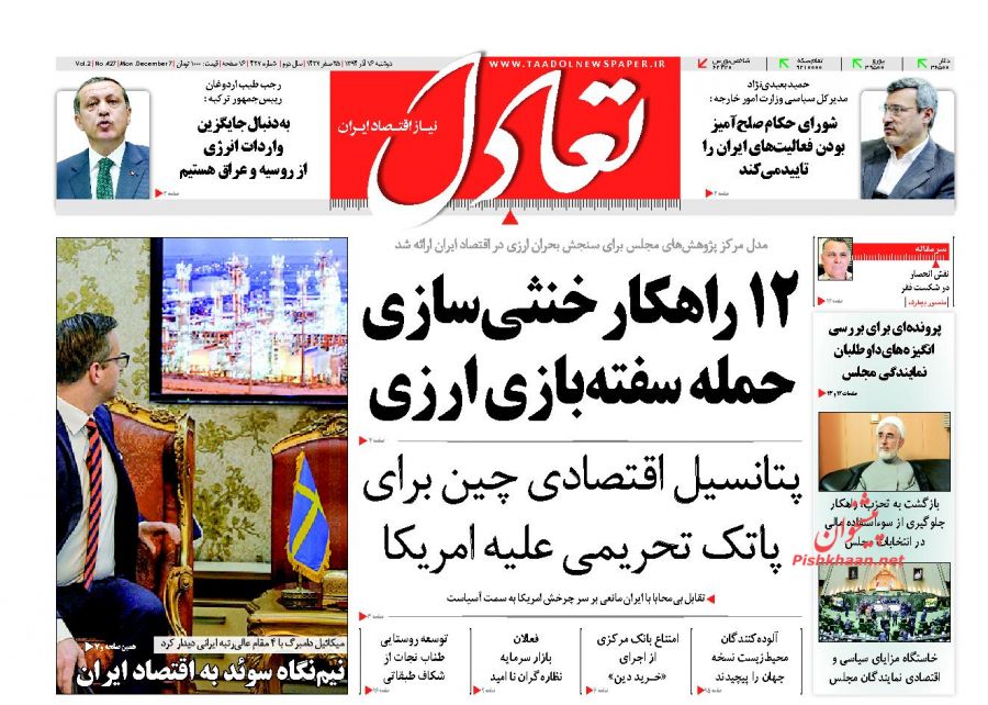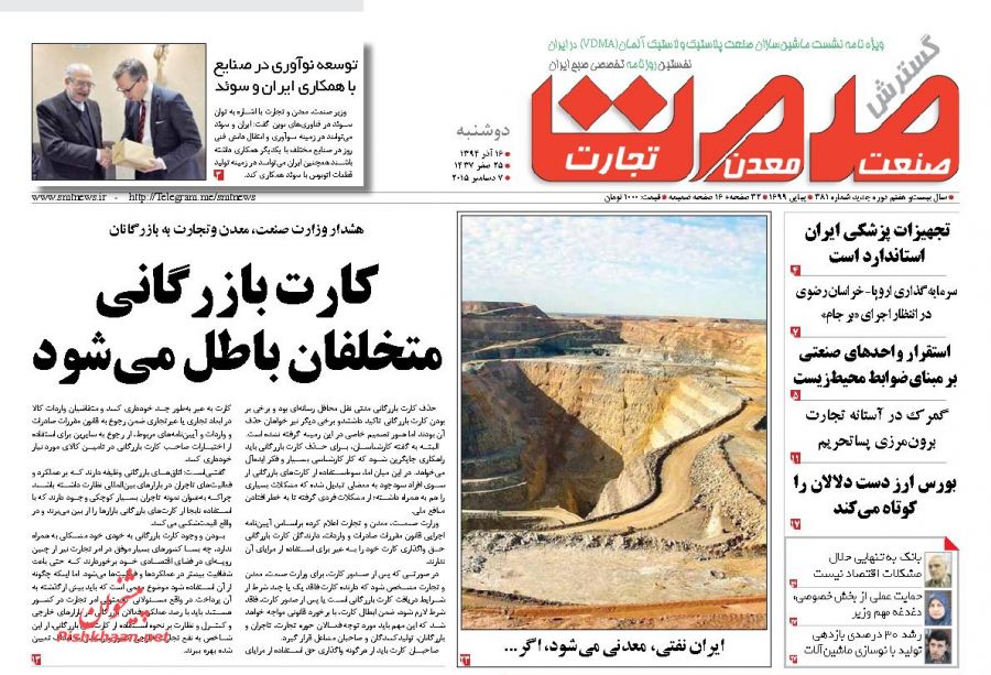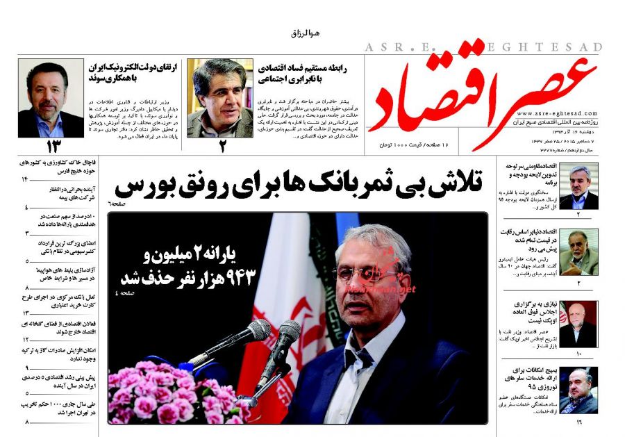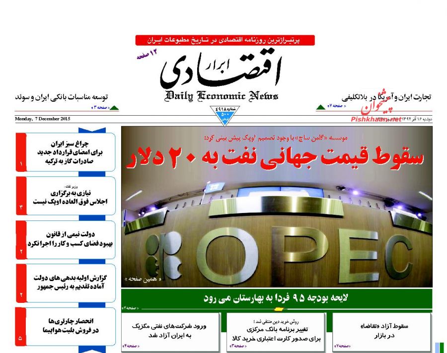 صفحه نخست روزنامه های اقتصادی دوشنبه 16 آذر