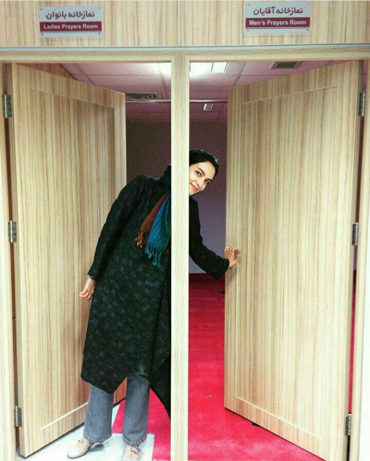 اتاق خبر: خبرگزاری برنا متعلق به وزارت ورزش و جوانان نوشت :میترا حجار با انتشار عکسی به نمازخانه مختلط اعتراض کرد. وی عکسی از دو درب زنانه و مردانه منتشر کرده که نشان می دهد بین دو درب دیواری وجود ندارد.