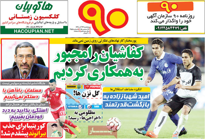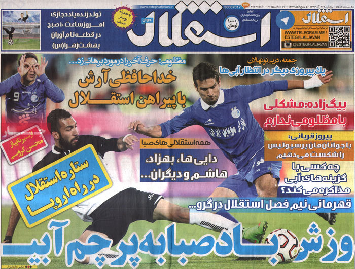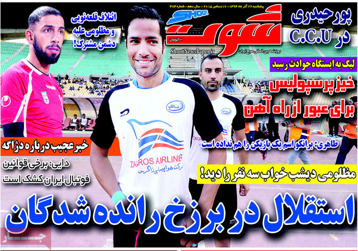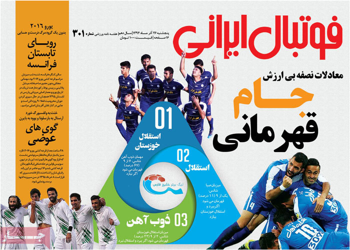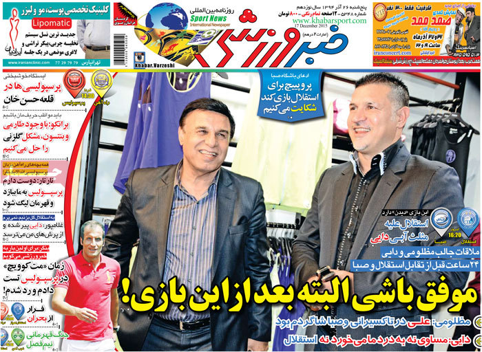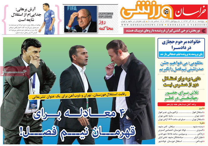 صفحه اول روزنامه های ورزشی امروز 26 آذر ماه 1394