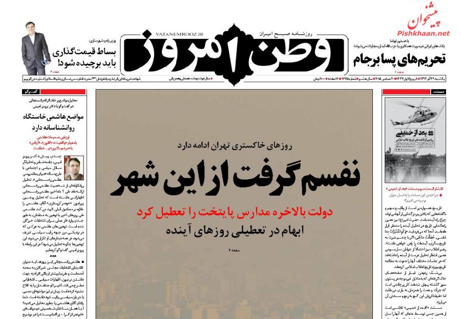 صفحه ی نخست روزنامه های سیاسی ایران یکشنبه ۲۹ آذر