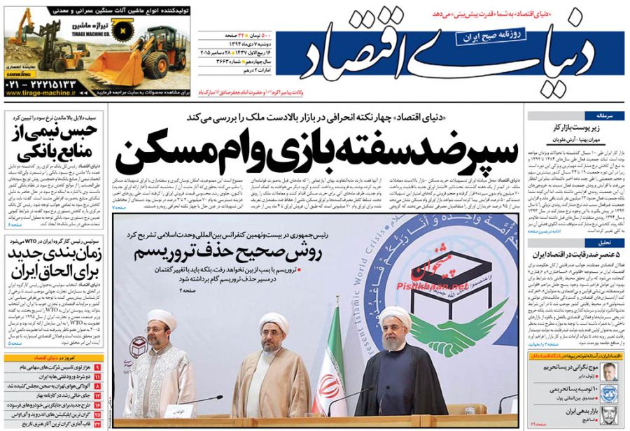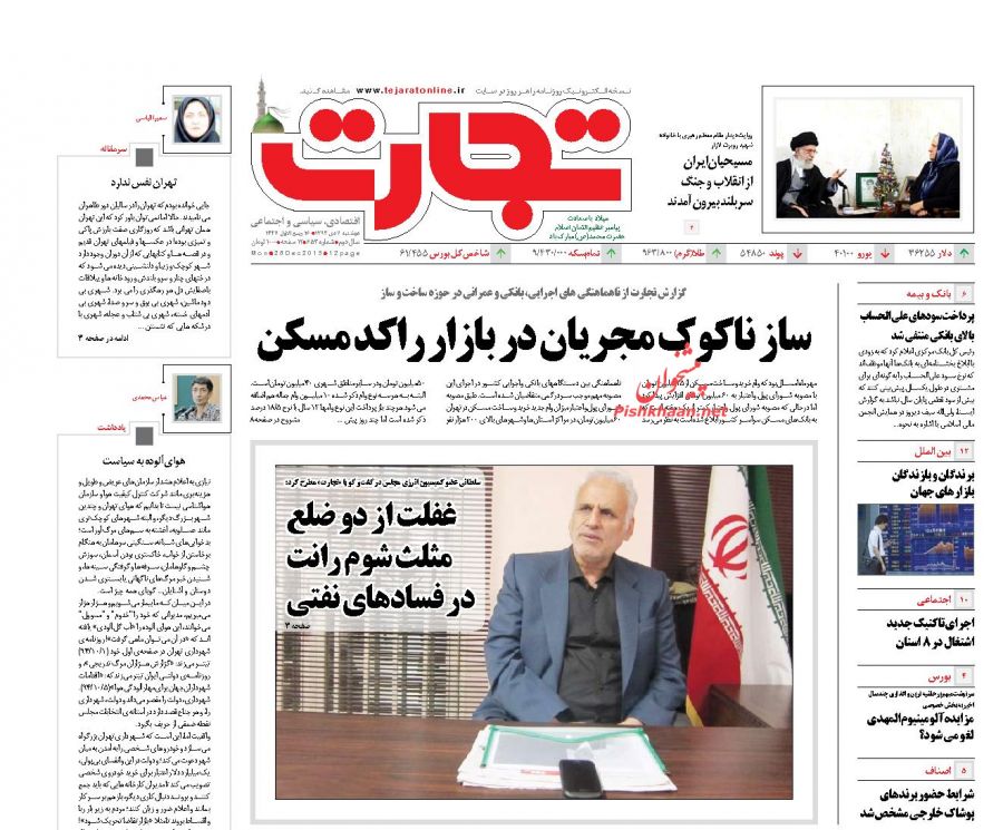 صفحه نخست روزنامه های اقتصادی ایران دوشنبه 7 آذر