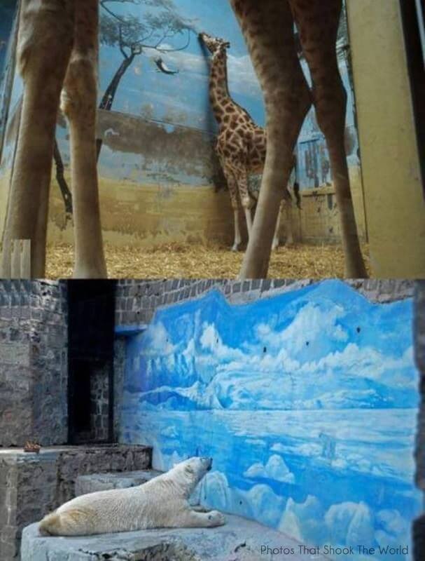 حیوانات در اسارت که به تصاویر ساختگی حیات وحش خیره شده اند.