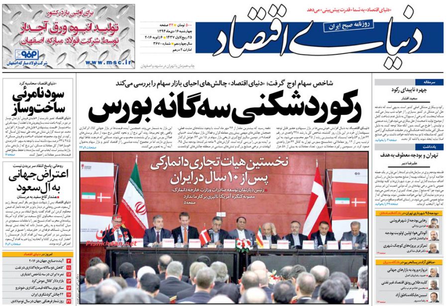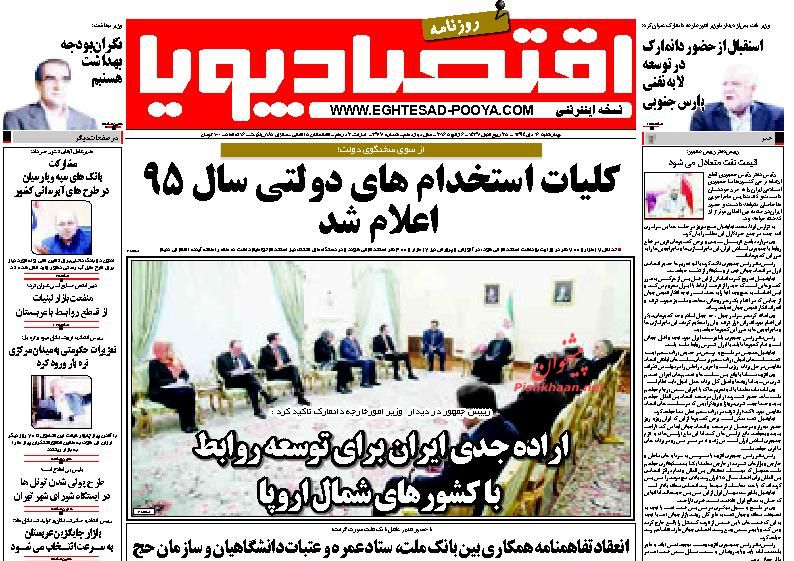 صفحه نخست روزنامه های اقتصادی ایران چهارشنبه 16 دی