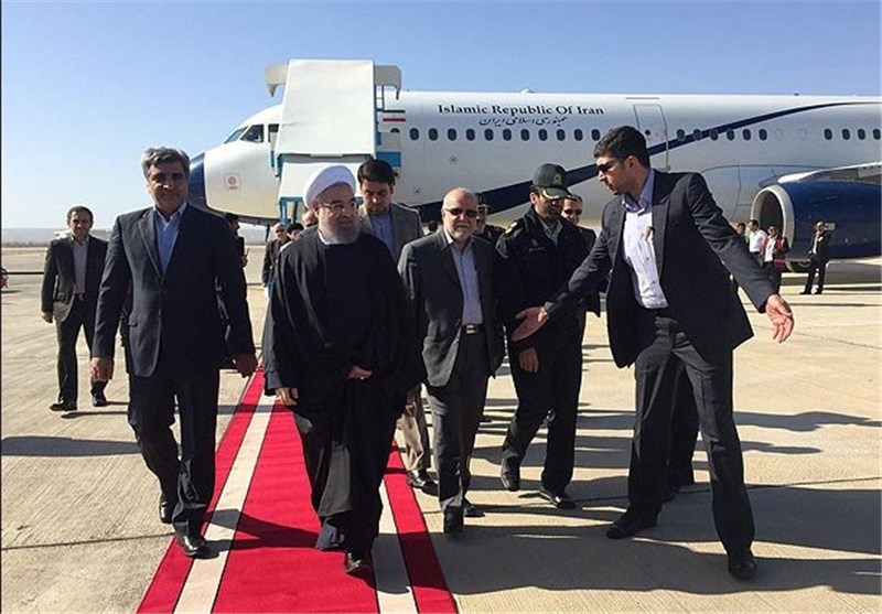 اتاق خبر: حجتالاسلام والمسلمین حسن روحانی دقایقی پیش برای افتتاح رسمی فازهای 15 و 16 و هفتمین پالایشگاه پارس جنوبی وارد فرودگاه بینالمللی خلیج فارس عسلویه شد و مورد استقبال وزیر نفت، مسئولان پارس جنوبی، استاندار بوشهر و مسئولان محلی شهرستان عسلویه قرار گرفت.
