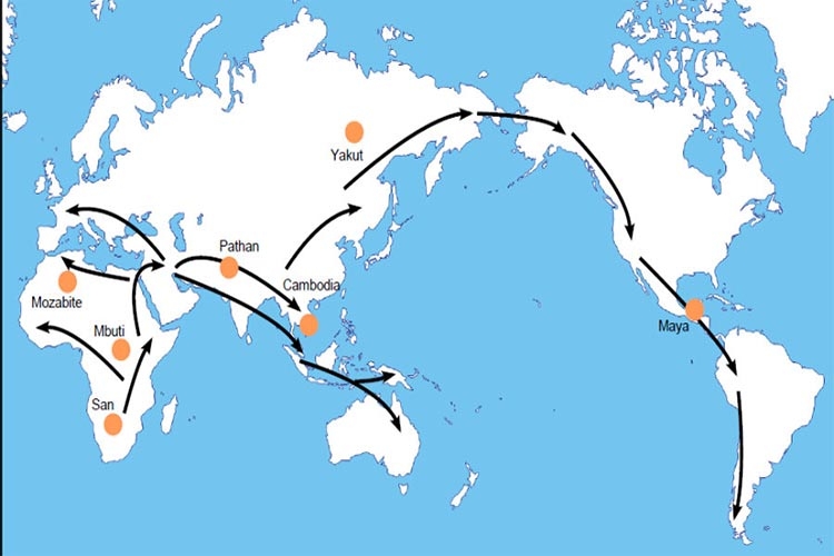 اتاق خبر - گفته میشود که انسانهای مدرن یا هوموساپینها (Homo sapiens) در حدود ۱۵۰ هزار سال پیش برای نخستین با در آفریقا دیده شدهاند. پس از حدود ۱۰۰ هزار سال از آن زمان، دستهای از این انسانها به سوی آسیا کوچ میکنند و در ادامه هم برخی از آنها با عبور از تنگهی برینگ خود را به سرزمینهای آمریکا رسانده و در آن سکنی گزیدهاند. اکسکوفیر (Excoffier) و همکارانش به تازگی یک مدل تئوری دربارهی مهاجرت انسانها از آفریقا ارائه دادهاند.