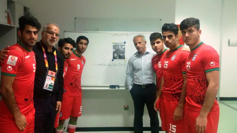 اتفاقی که پیش از بازی برابر چین در رختکن ایران افتاده بود و امیدهای ایران اقدام به نصب تصویر مرحوم احدی کرده بودند در این بازی هم همین عمل را انجام دادند و متأسفانه این بار به یاد مرحوم همایون بهزادی تصویر وی را در رختکن نصب کردند و تا باید او بازی مرحله یکچهارم نهایی را آغاز کنند.
