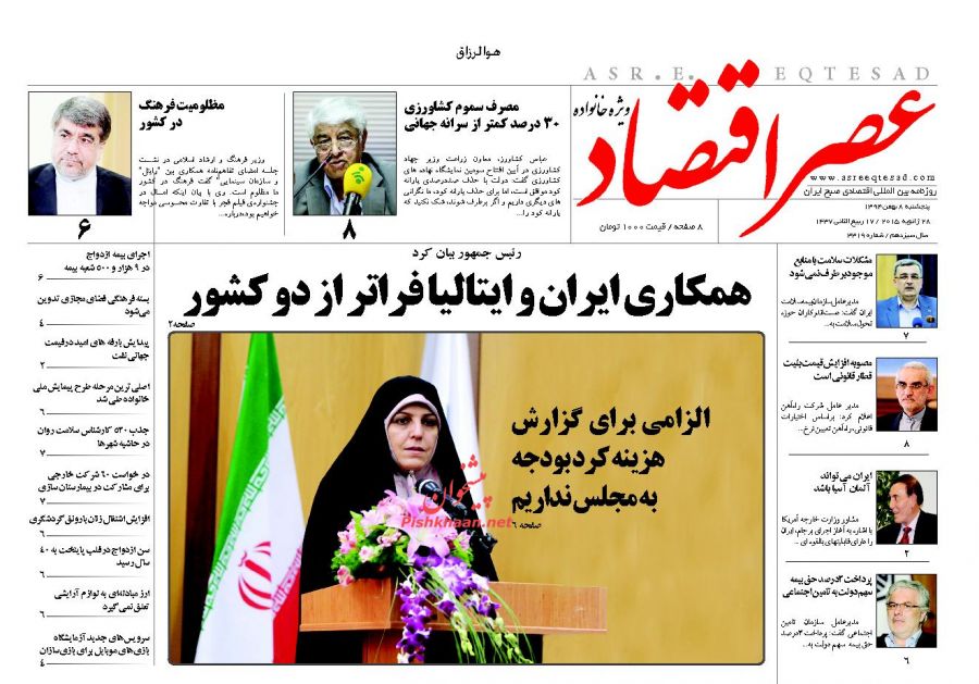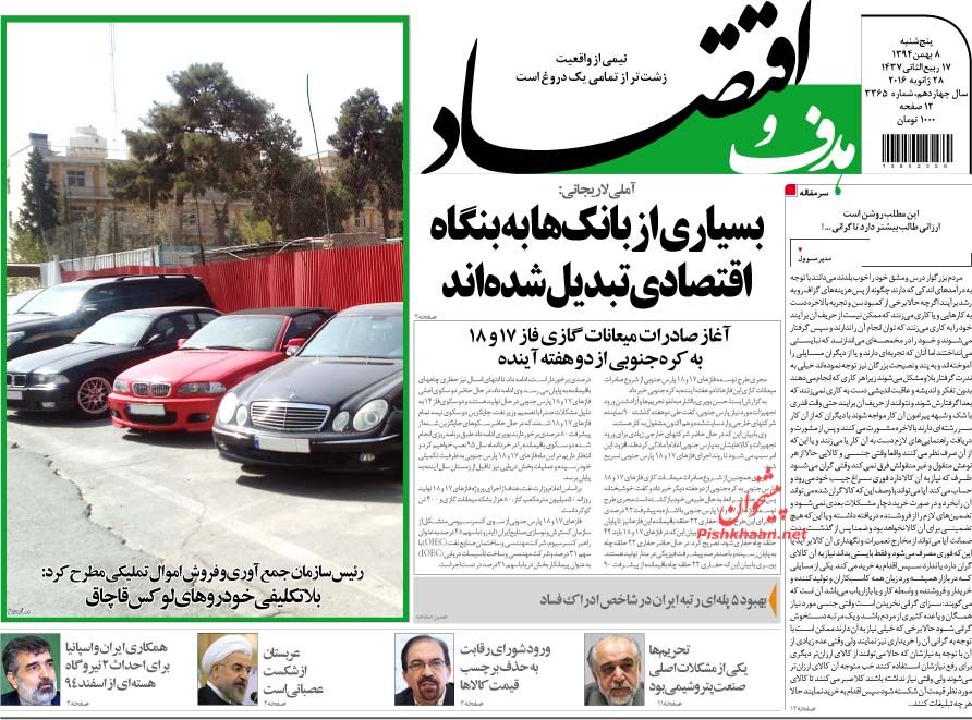 صفحه نخست روزنامه های اقتصادی ایران 8 بهمن