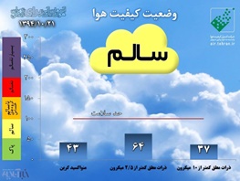اتاق خبر - محمد رستگاری افزود: براساس اطلاعات رسیده از ایستگاههای سنجش آلودگی هوای شهر تهران، شاخص کیفی هوای دیروز تهران 96 و در شرایط سالم قرار داشت و شاخص کیفی 24 ساعت گذشته منتهی به 8 صبح امروز نیز 75 و مشابه روز گذشته در شرایط سالم بوده است.