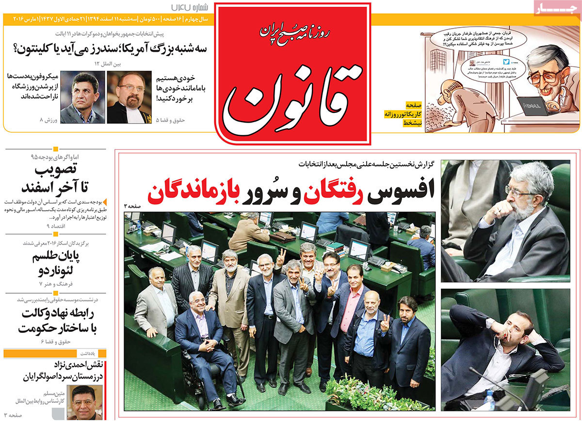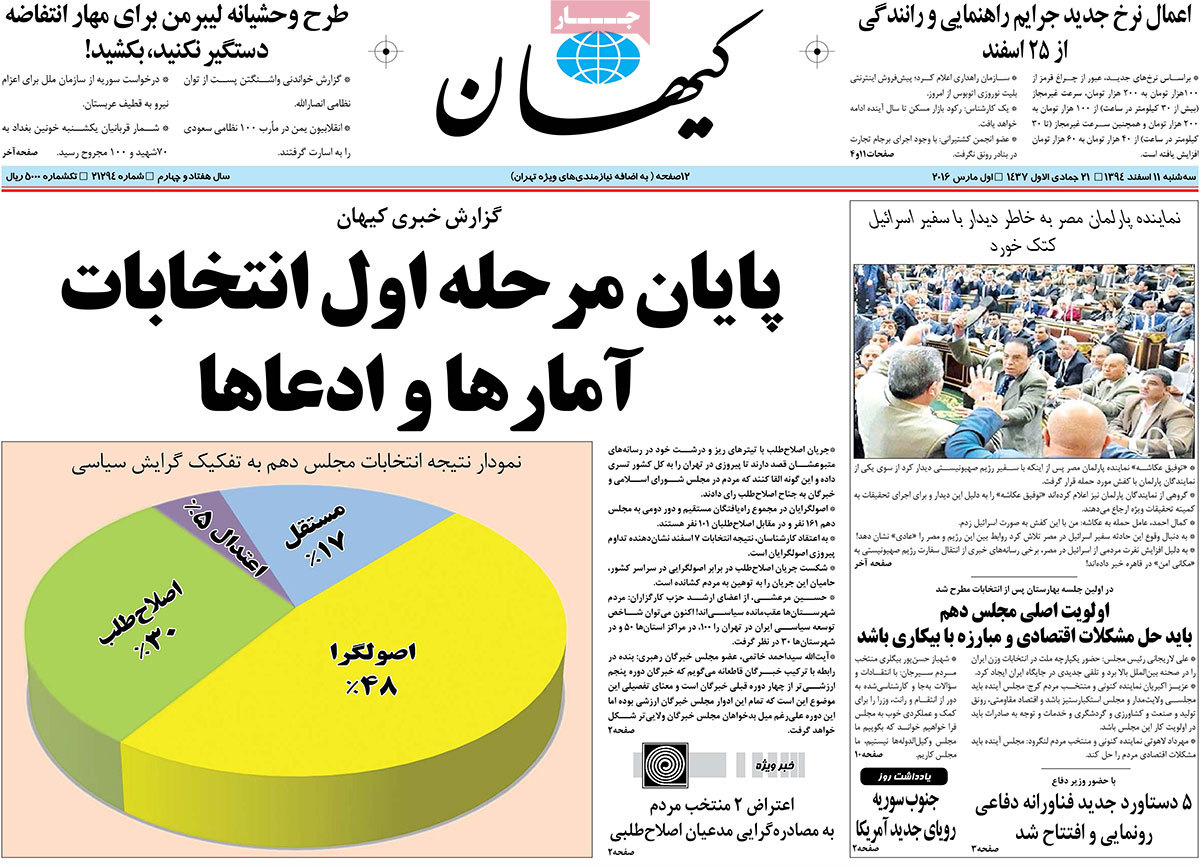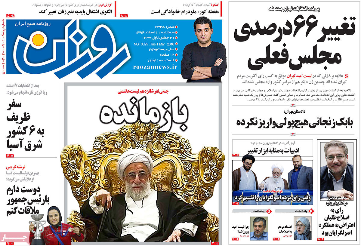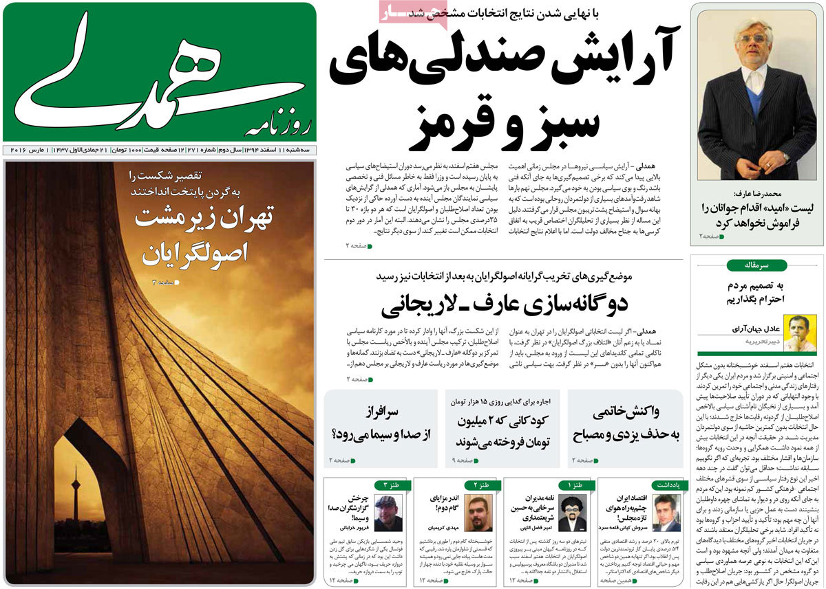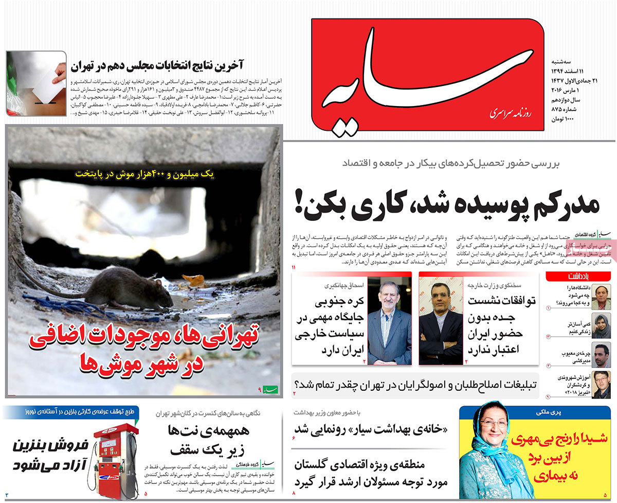 تصویر صفحه اول روزنامه های سیاسی و اجتماعی- 3شنبه 11 اسفند94
