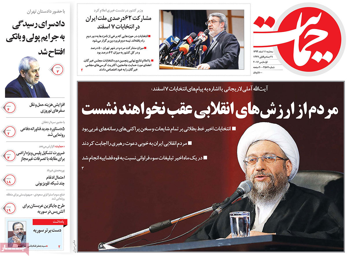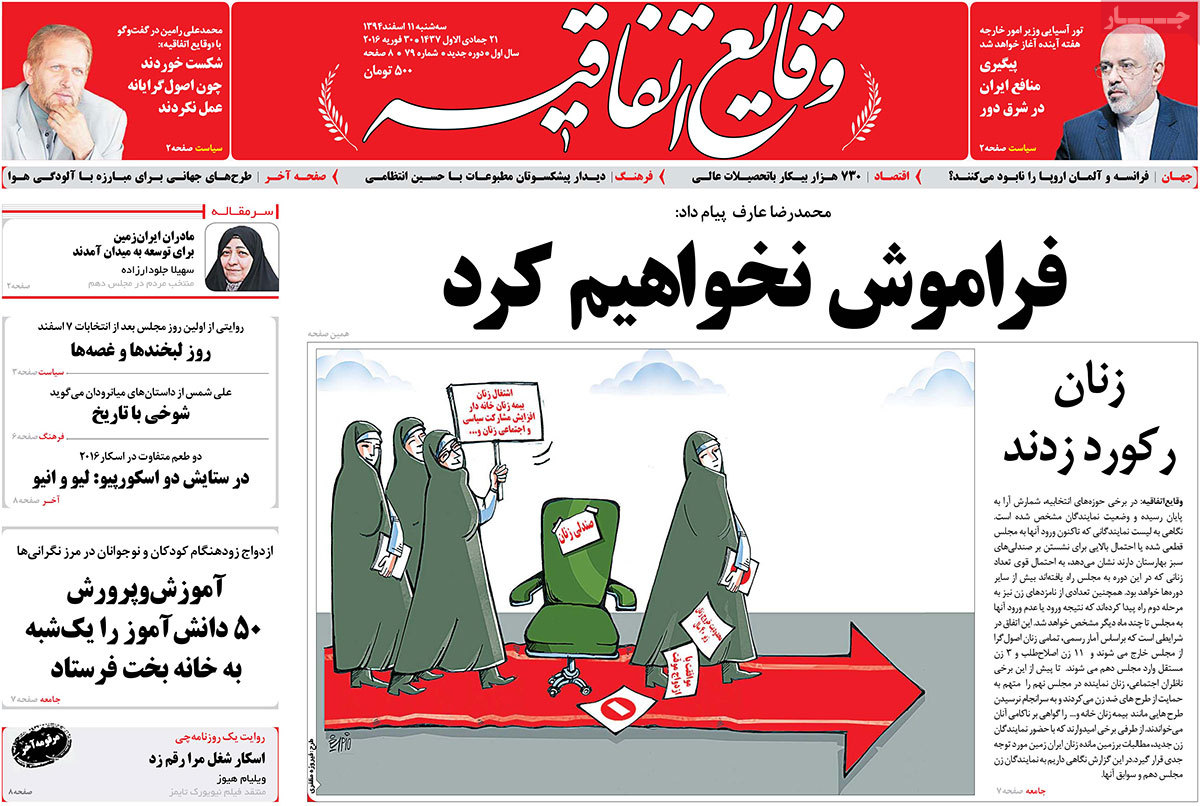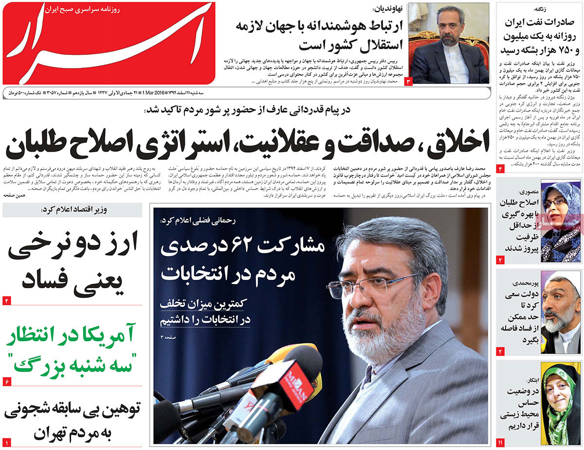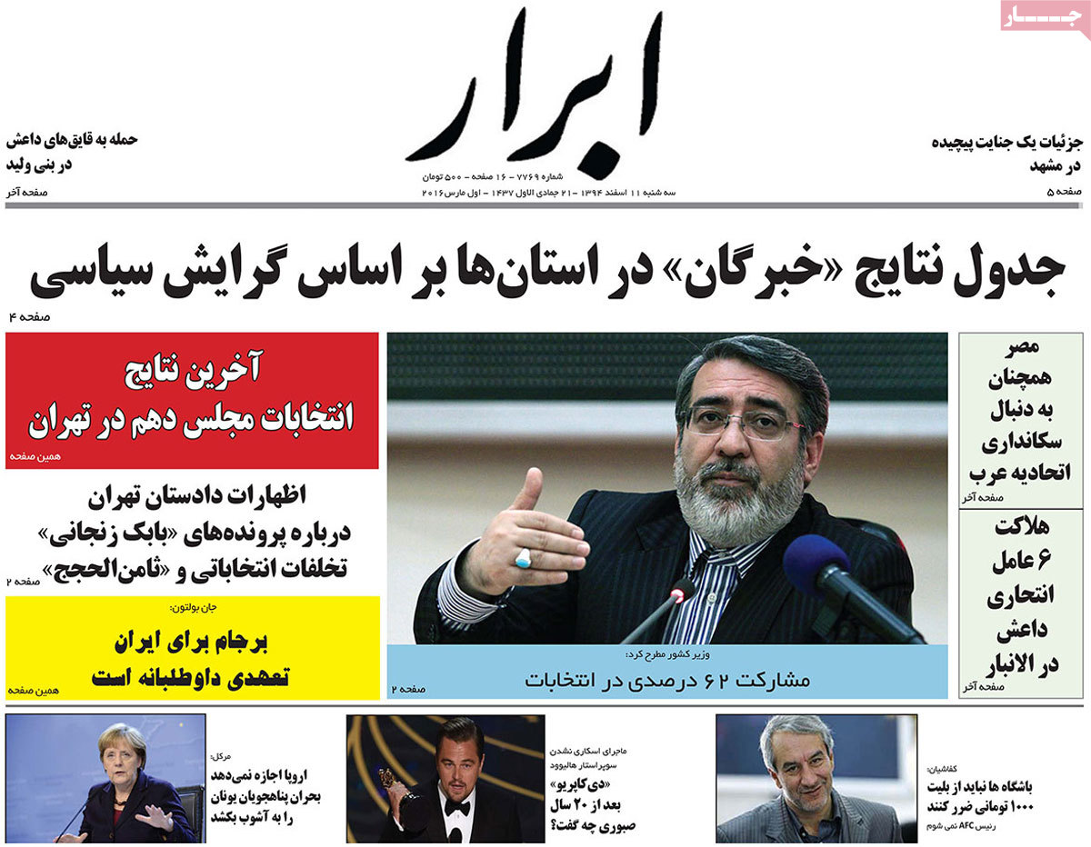 تصویر صفحه اول روزنامه های سیاسی و اجتماعی- 3شنبه 11 اسفند94