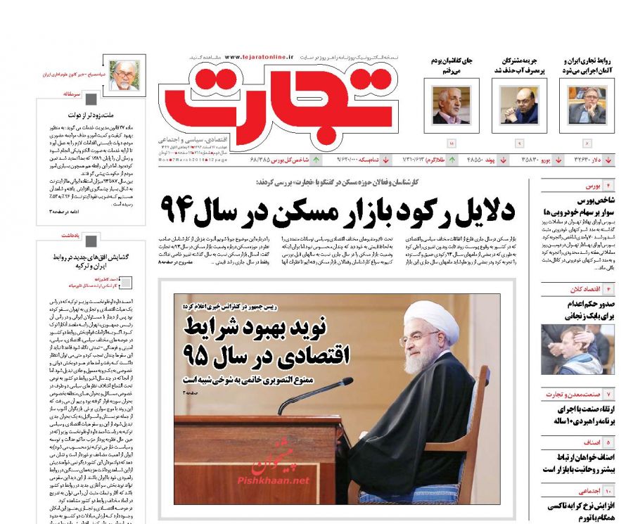 صفحه نخست روزنامه های اقتصادی ایران دوشنبه 17 اسفند 94