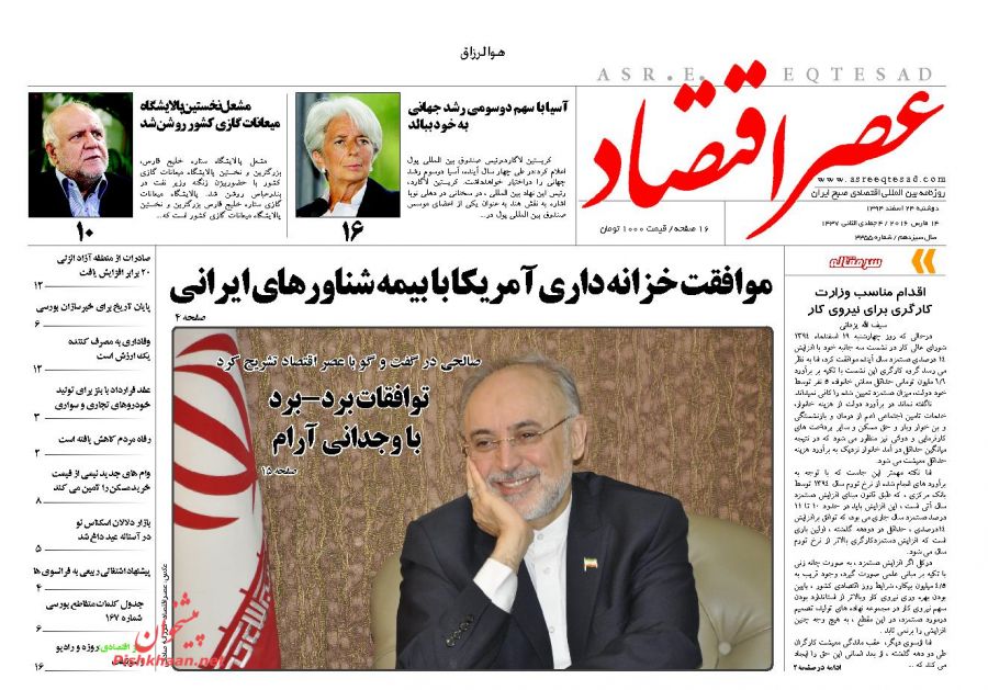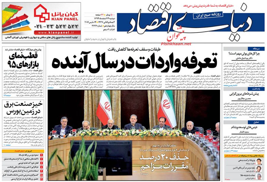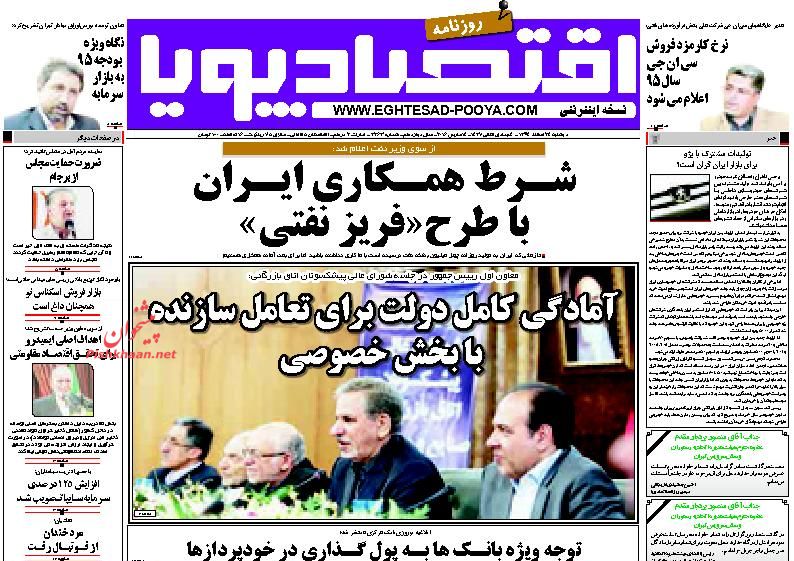 صفحه نخست روزنامه های اقتصادی ایران دوشنبه 24 اسفند 94