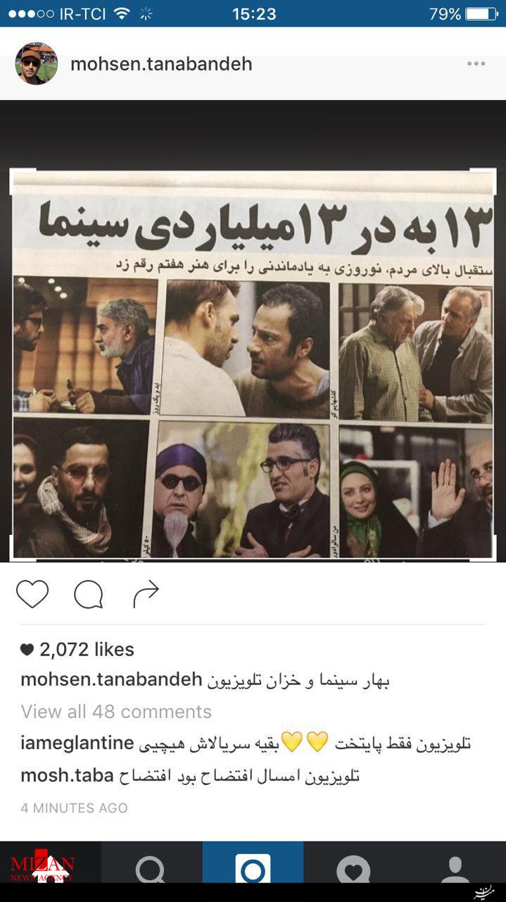 محسن تنابنده بازیگر سینما و تلویزیون با انتشار عکسی در صفحه اینستاگرامش نوشت:
