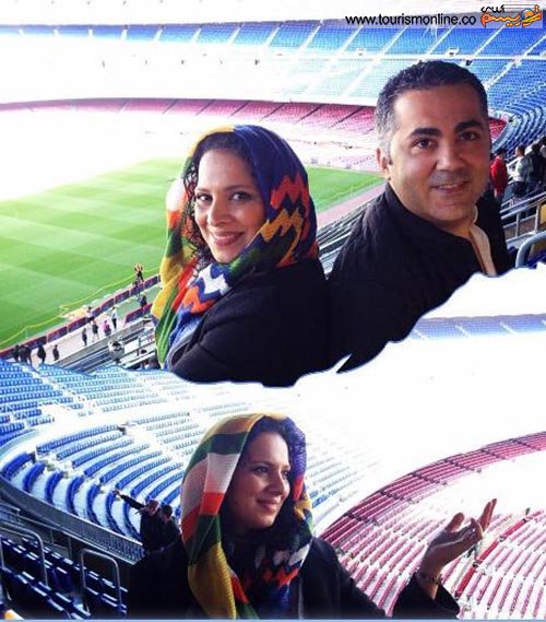 روشنک عجمیان بازیگر 40ساله به همراه همسرش به ورزشگاه بارسلونا رفته و عکس هایی به یادگار گرفته اند.