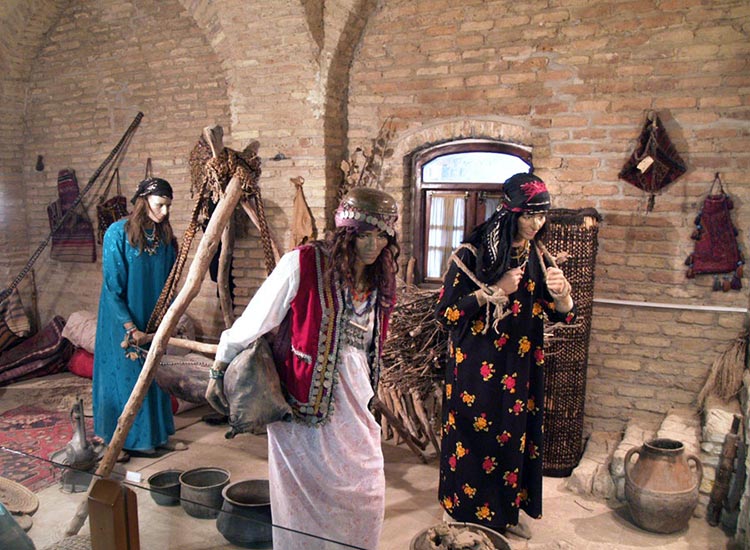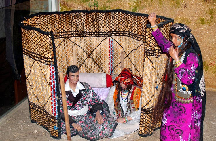 موزهی مردمشناسی در بخش جنوبی حیاط دوم قرار دارد و در آن، عکسها و ماکتهای کوچک و بزرگ زیادی از بخشهای مختلف زندگی روستایی و عشایری مردم لرستان و باورها و اعتقادات آنان مثل چشمزخمها و تولد، ابزار و وسایل روشنایی سنتی، کتابت و لوازم مربوط به آن، پوشاک سنتی مردان و زنان، ابزار و صنایع کشاورزی بومی، گالری عکس از مناظر طبیعی و زندگی مردم و مراسم سوگواری و عروسی به نمایش گذاشته شده است. نمایش فیلم و پخش موسیقی لری به همراه نمایش سازها از دیگر بخشهای این موزه است. اما میتوان دیدنیترین آثار این بخش را سنگ قبرهای مردان و زنان لر دانست که تفاوت قابل توجهی با باقی نقاط ایران دارند. در گذشته در استان لرستان رسم بر این بوده که روی قبر متوفی، سنگی عمودی کار بگذارند و صحنههایی از زندگی واقعی او را روی آن نقاشی کنند. مثلاً روی قبر یک فرد شکارچی تصاویری از اسلحه و شکار و ... حک شده است.