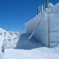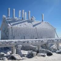 همانطور که در تصویر بالا میبینید، ایستگاه آب و هوایی این منطقه که در بالای کوه قرار دارد، با چند زنجیر به زمین متصل شدهاست تا باد آن را با خود نبرد!