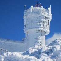 کمترین دمایی که تا به حال در این منطقه به ثبت رسیده است، دمای ۴۶- درجه سانتیگراد بوده که تنها قطب جنوب نسبت به این دما سردتر است. بیشترین سرعت وزش باد که در این منطقه محاسبه شده، ۲۳۱ مایل بر ساعت معادل ۳۷۲ کیلومتر بر ساعت بوده است که این عدد برای مدتی طولانی، رکورددار بیشترین سرعت وزش باد روی کره زمین در قرن بیستم بود. این رقم حتی سنگینترین طوفانها را نیز پشت سر میگذاشت. خود قله به طور میانگین ۱۱۰ روز از سال را در باد و طوفان سپری میکند که همین امر باعث کاهش شدید میانگین دما میشود. در تاریخ ۶ ژانویه ۲۰۰۴، قله کوه به دمای ۴۲- درجه سانتیگراد رسید و وزش باد با سرعت ۸۷.۵ مایل بر ساعت معادل ۱۴۰.۸ کیلومتر بر ساعت را متحمل شد که نتیجه وزش چنین بادی در این دما، بادی با دمای معادل ۷۴.۷۷- درجه سانتیگراد است!