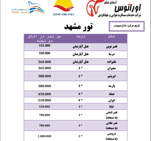 آژانس مسافرتی اورانوس آرمان سفر ثبت نام تور مشهد را آغاز کرد.