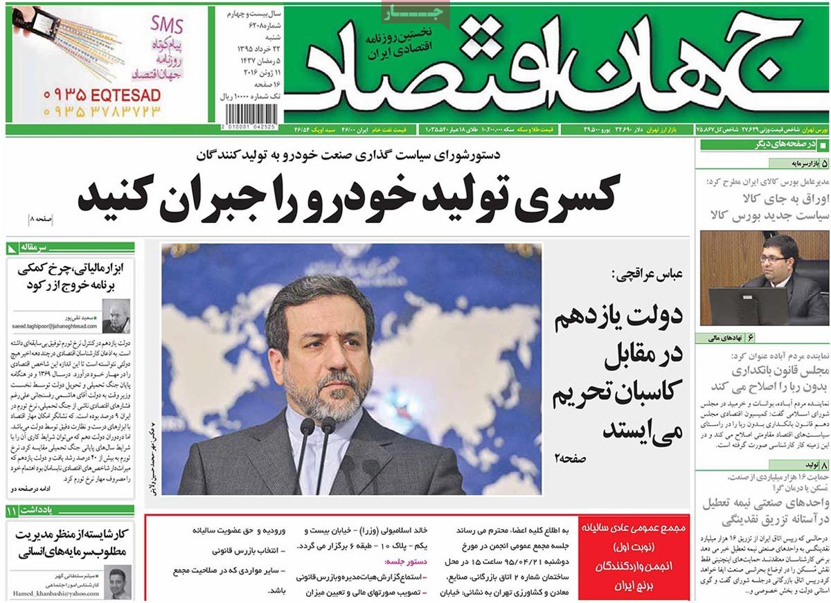 تصویر صفحه اول روزنامه های اقتصادی- شنبه22خرداد 95