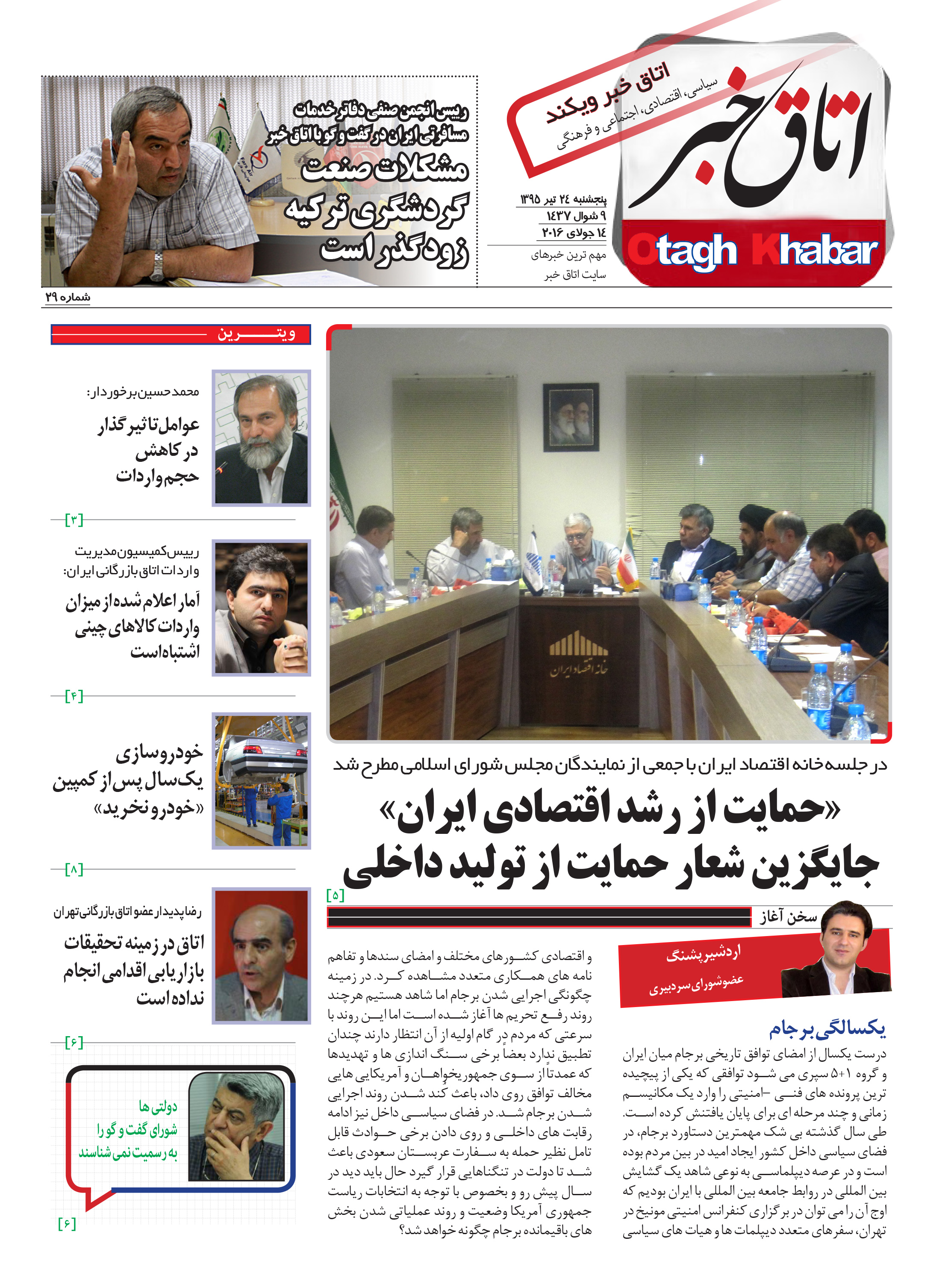 اتاق خبر: 29مین مجله اینترنتی اتاق خبر که اختصاص دارد به تحلیل ها و مهمترین اخبار هفته گذشته در حوزه های اقتصادی، بخش خصوصی، صنایع و خودرو و حوزه های سیاست، سلامت و توریسم، منتشر شد. برای دریافت مستقیم آن بر روی لینک زیر کلیک کنید
