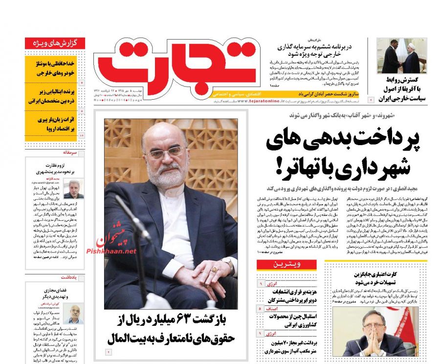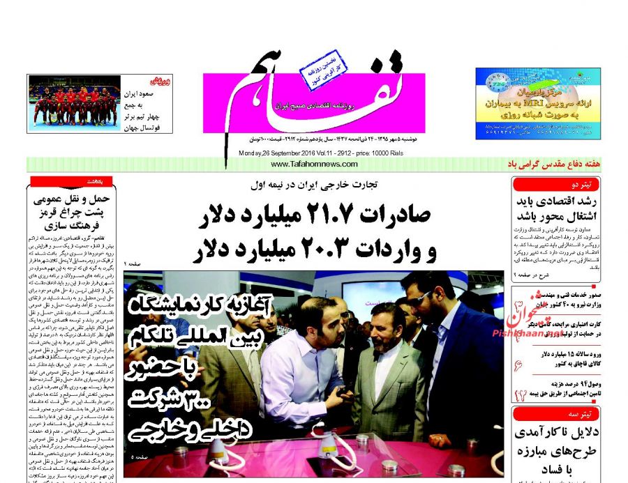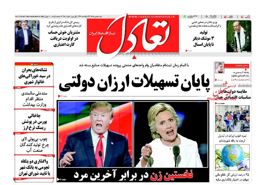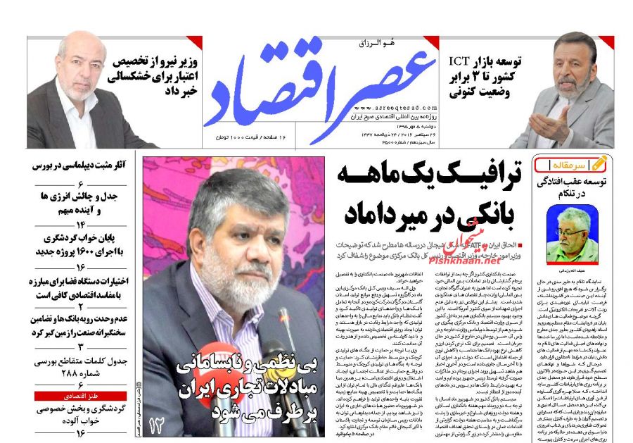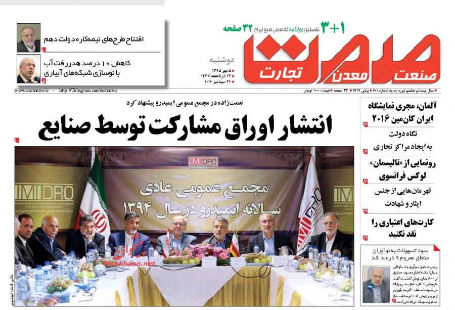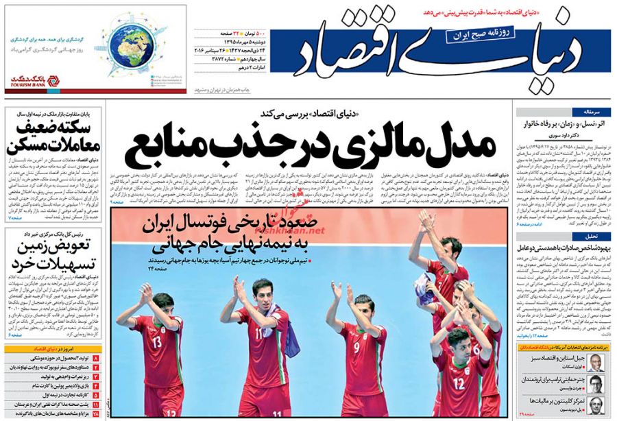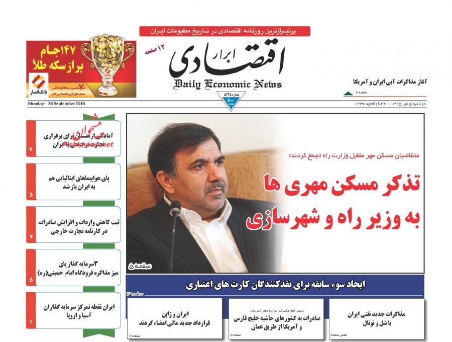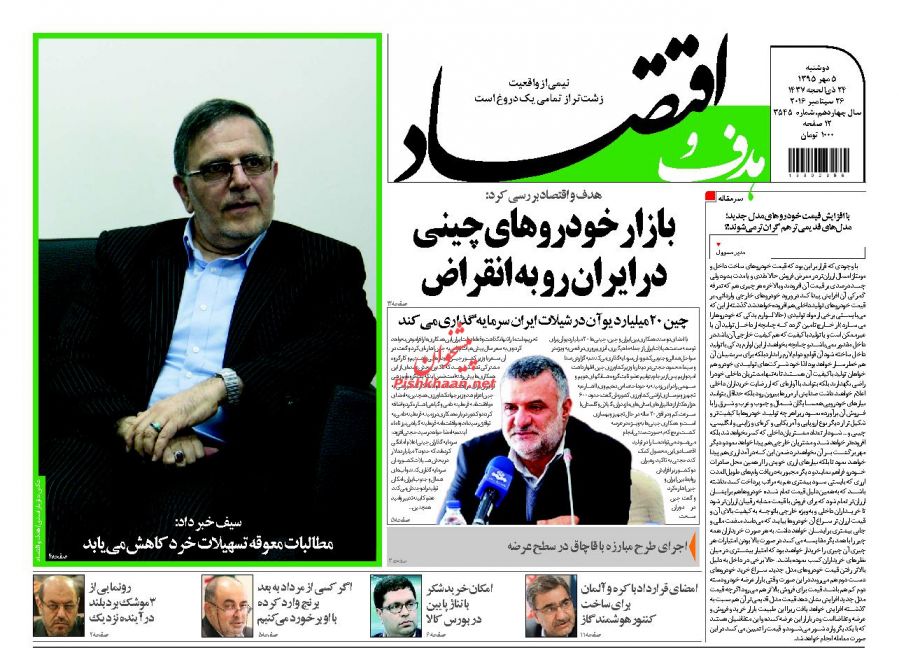 صفحه اول روزنامه های اقتصادی روزدوشنبه 5 مهر