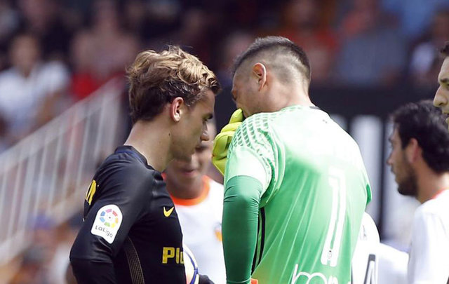 در نیمه نخست تیم مادریدی بیشتر از میزبان حمله کرد و والنسیا به دنبال فرصتی بود تا از طریق ضد حمله دروازه اتلتیکو را باز کند. شاگردان دیگو پابلو سیمئونه تا دقیقه 25 تنها یک بار خطر ساز شدند که دیگو آلاوس شوت گریزمان را دفع کرد و مانع از گلزنی مهاجم فرانسوی شد. در دقایق پایانی این نیمه داور یک پنالتی به نفع تیم مهمان اعلام کرد، اما گریزمان نتوانست از این فرصت استفاده کند و با درخشش دروازه بان والنسیا توپ درون دروازه قرار نگرفت. آلوس هجدهمین پنالتی اش را در لالیگا مهار کرد. او هفته گذشته نیز با مهار هفدهمین پنالتی توانست رکورد آندونی زوبی زارتا افسانه ای را بشکند. گریزمان هفته گذشته در لیگ قهرمانان نیز یک پنالتی را برابر بایرن مونیخ از دست داده بود.