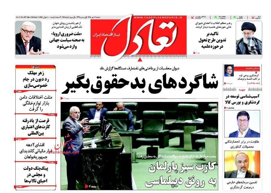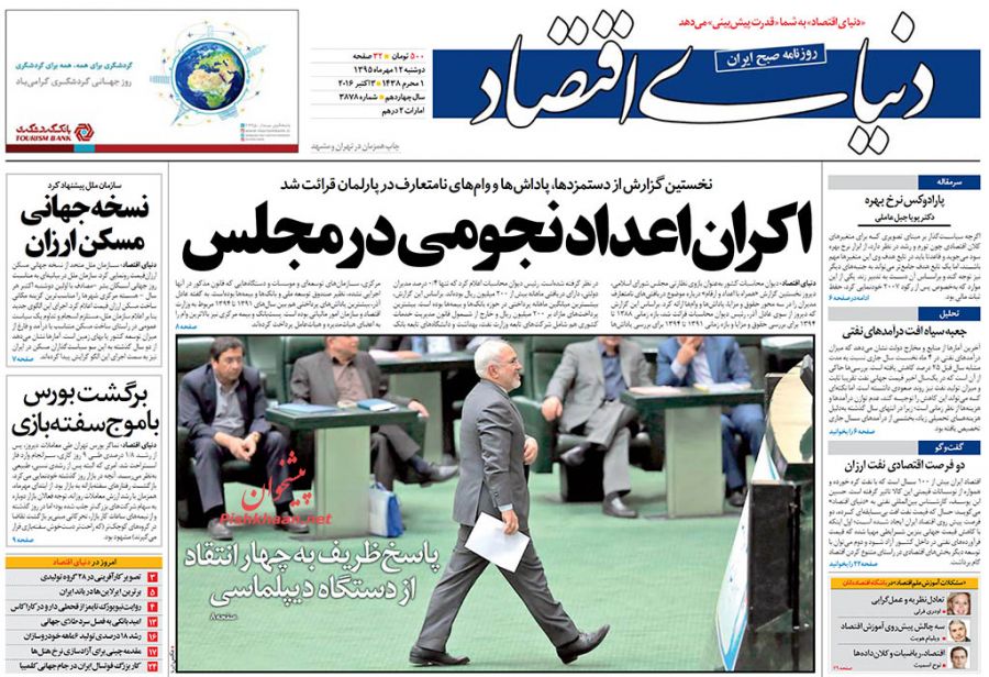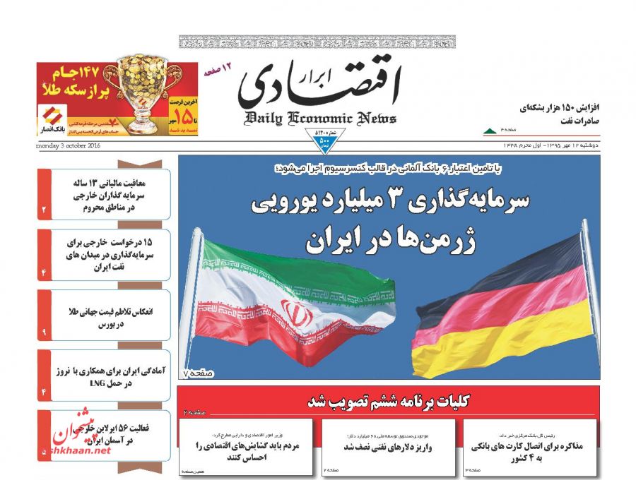 صفحه اول روزنامه های اقتصادی روز دوشنبه 12 مهر