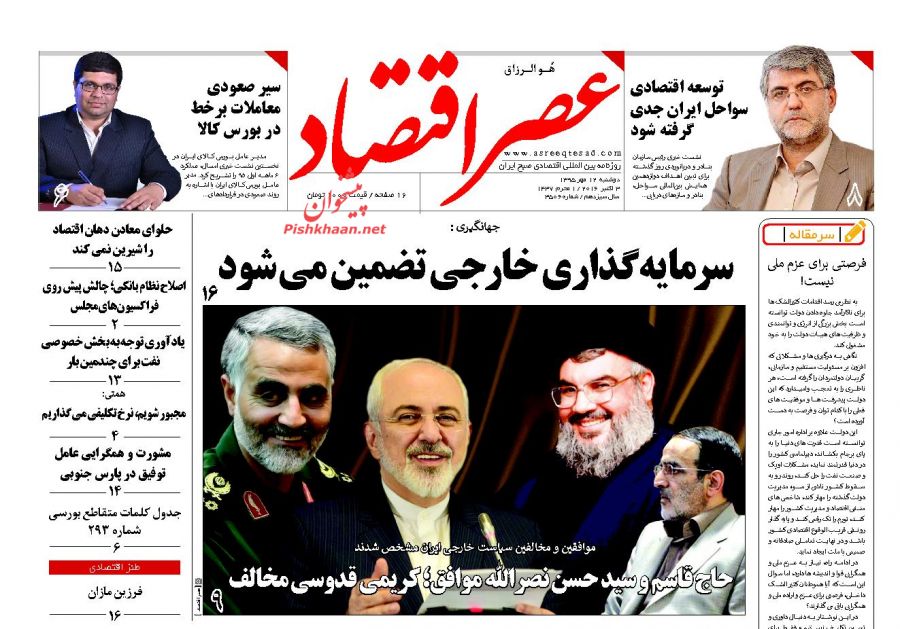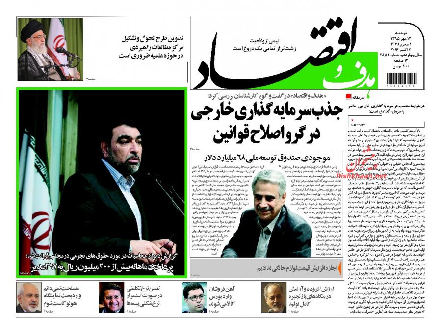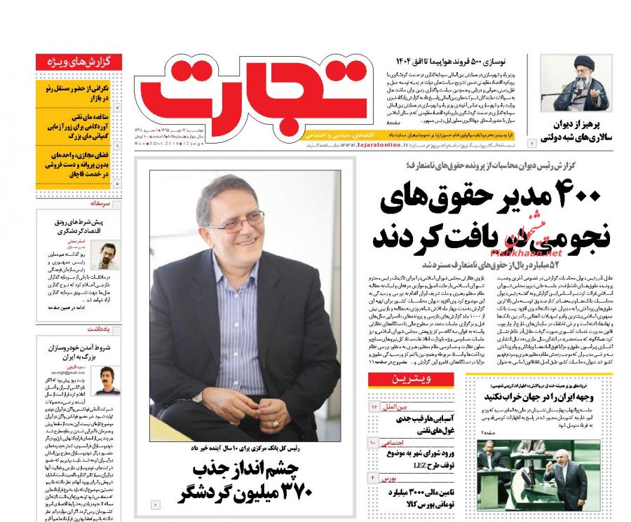 صفحه اول روزنامه های اقتصادی روز 30 آذر