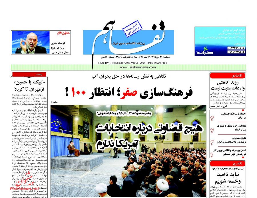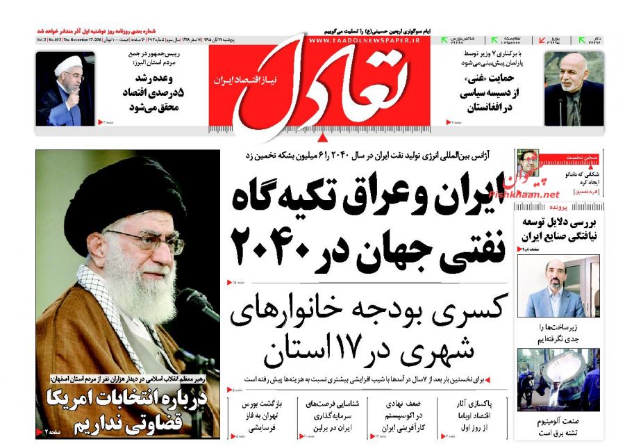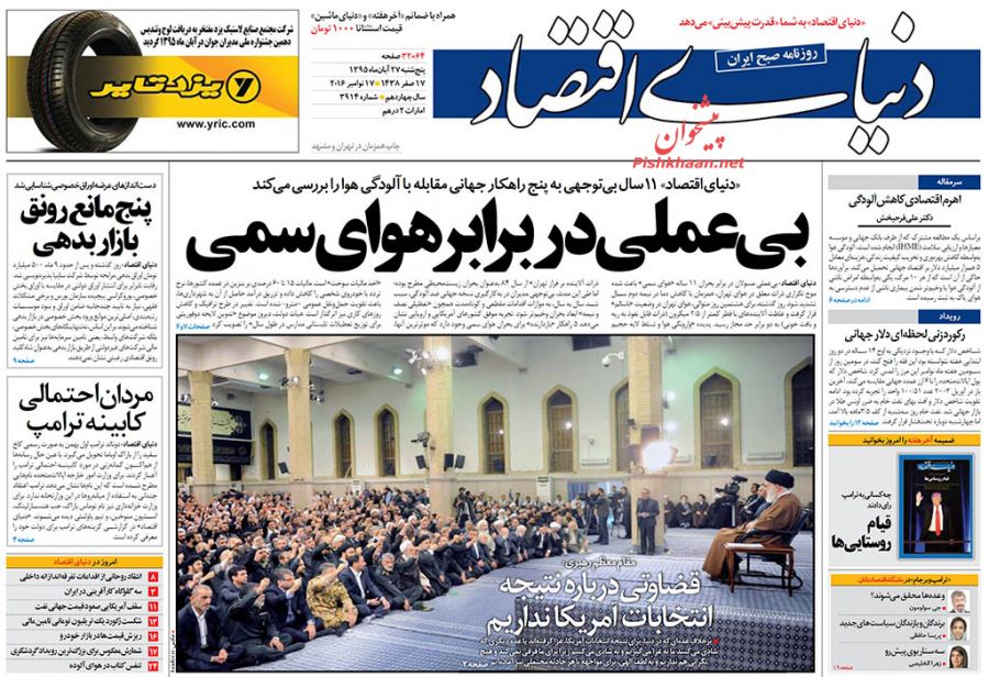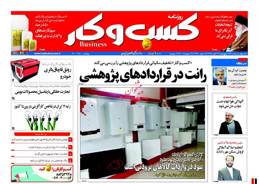 صفحه اول روزنامه های اقتصادی روز پنج شنبه 27 آبان