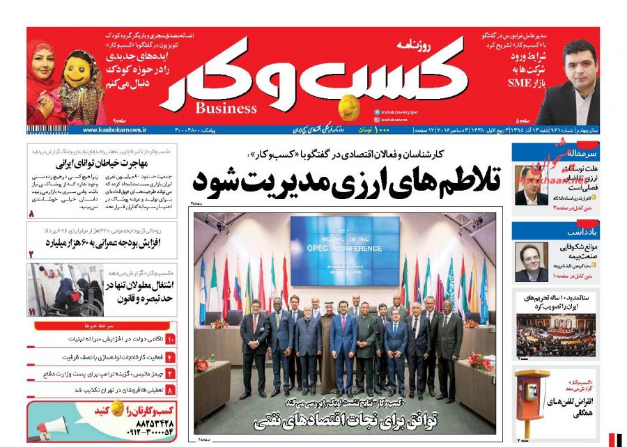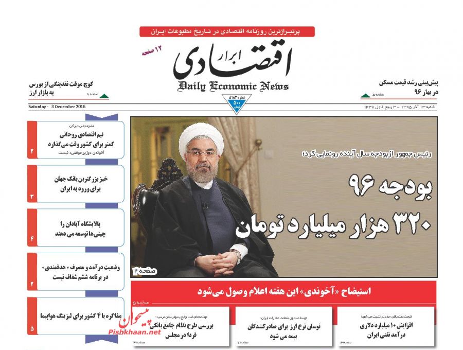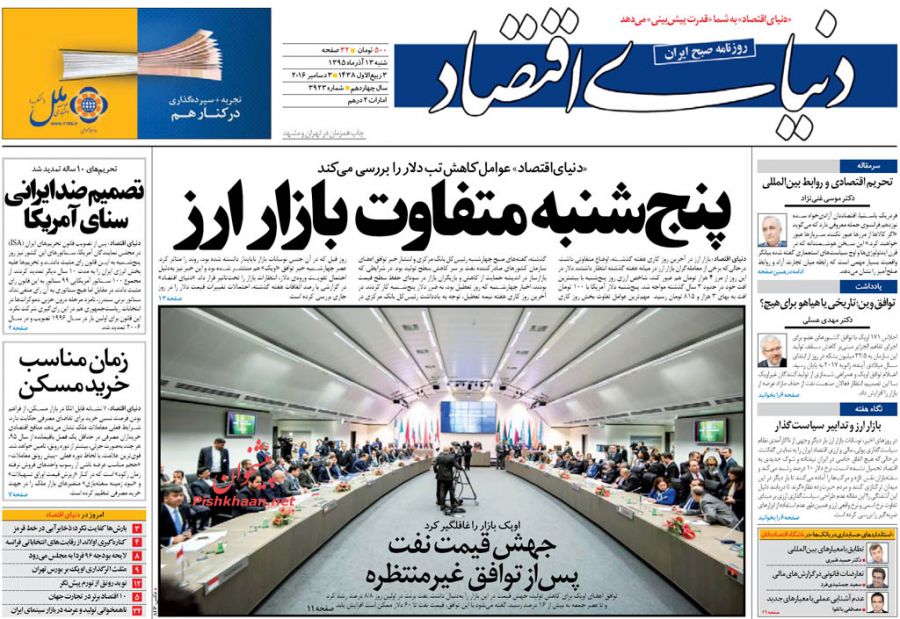 صفحه اول روزنامه های اقتصادی روز شنبه 13 آذر