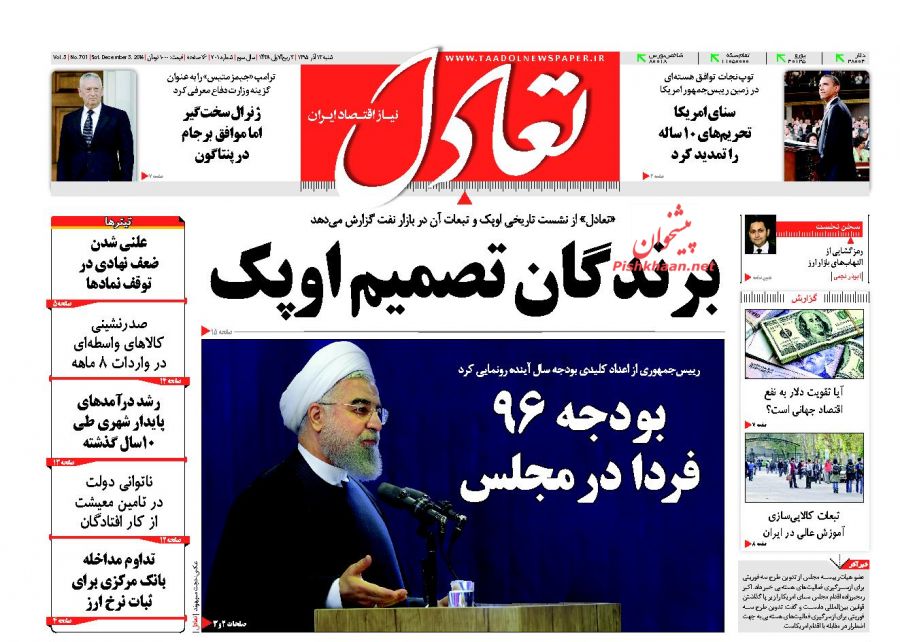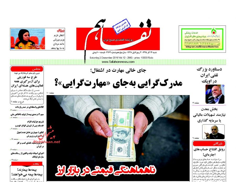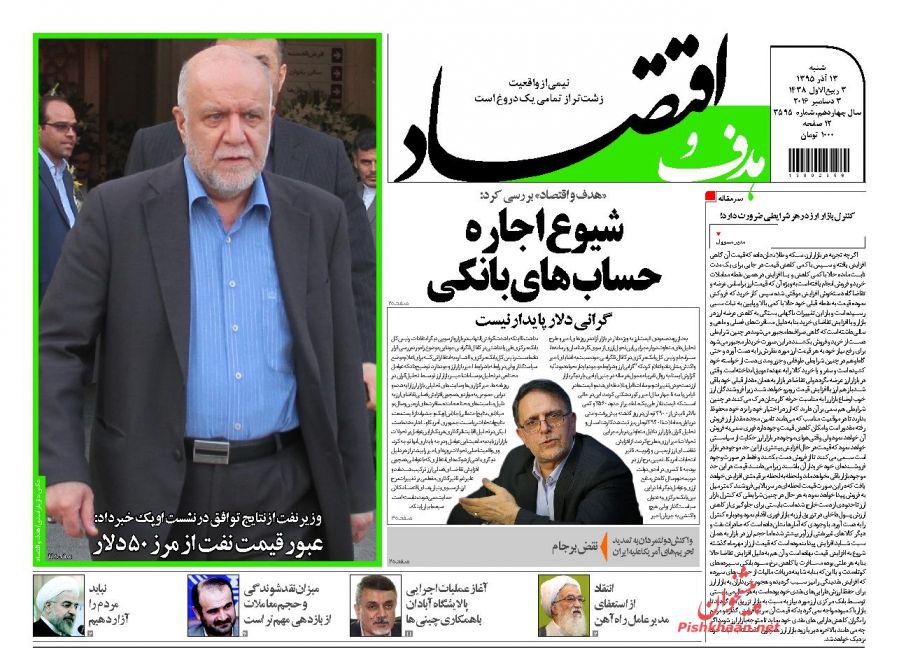 صفحه اول روزنامه های اقتصادی روز 30 آذر