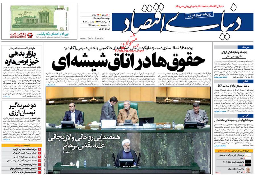 صفحه اول روزنامه های اقتصادی روز دوشنبه 15آذر