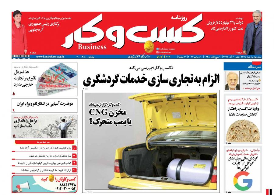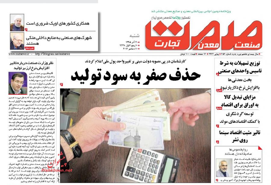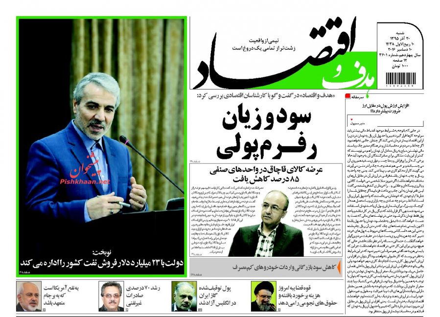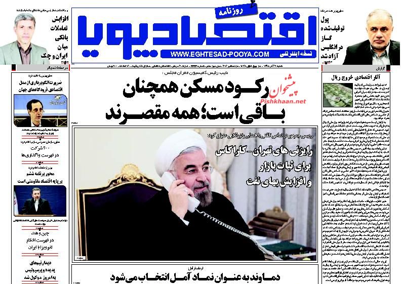 صفحه اول روزنامه های اقتصادی روز شنبه 20 آذر