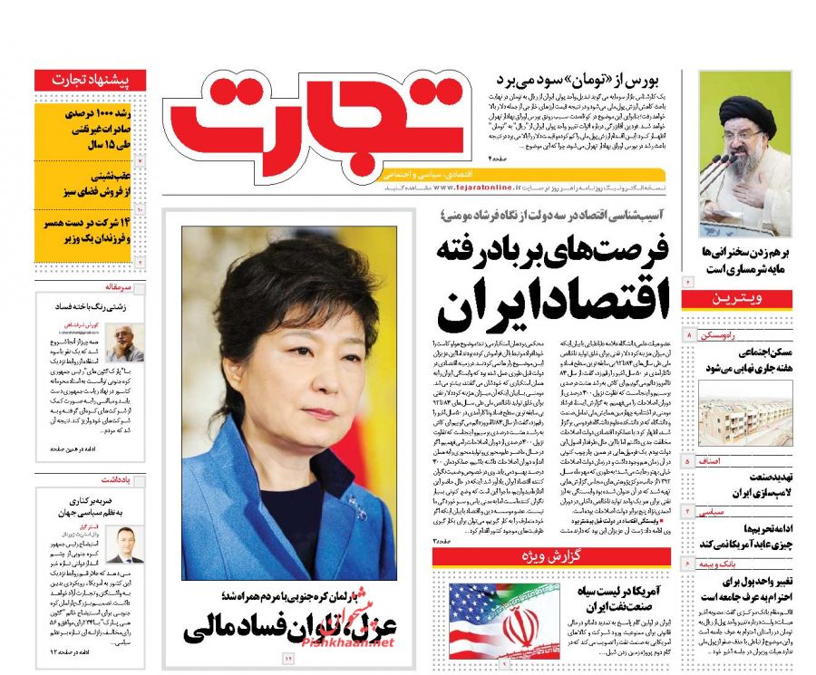 صفحه اول روزنامه های اقتصادی روز 30 آذر