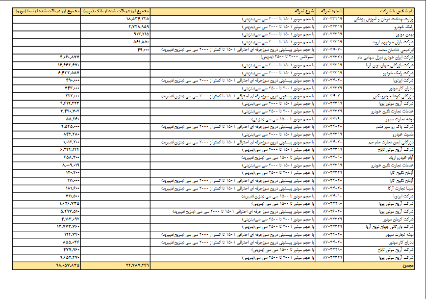 گفتنی است در ستاد اقتصادی دولت مقرر شده است بانک مرکزی با هماهنگی دستگاه های ذیربط و مسئول، نسبت به انتشار فهرست دریافت کنندگان ارز رسمی اقدام کند. بر این اساس در ادامه انتشار نخستین فهرست شرکت های دریافت کننده ارز توسط بانک مرکزی در روز یکشنبه دهم تیرماه، فهرست زیر که حاوی میزان تامین ارز رسمی برای واردات خودرو می باشد و از سوی وزارت صنعت، معدن و تجارت در اختیار قرار گرفته است، منتشر می شود.