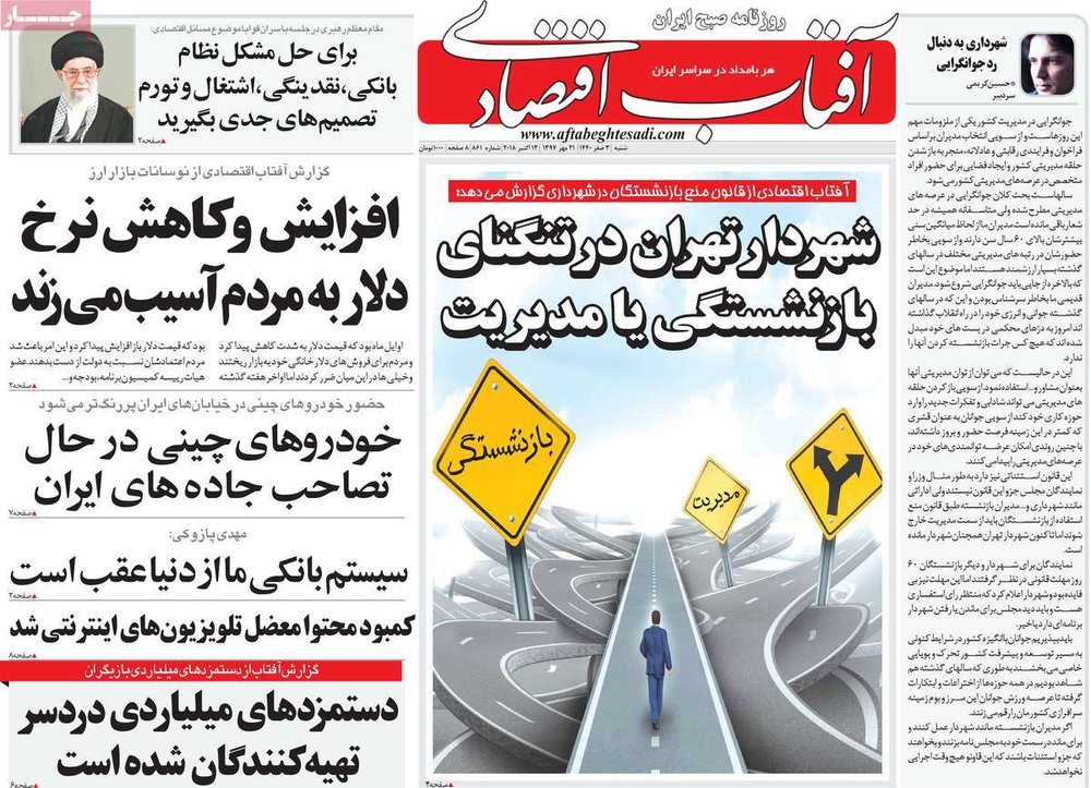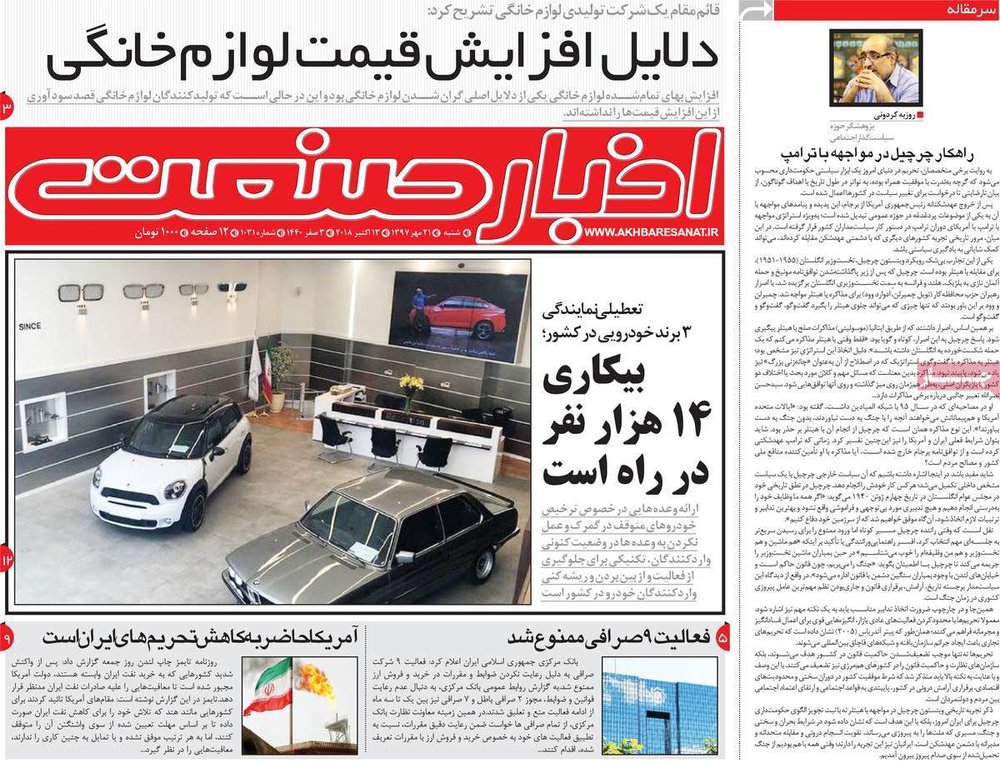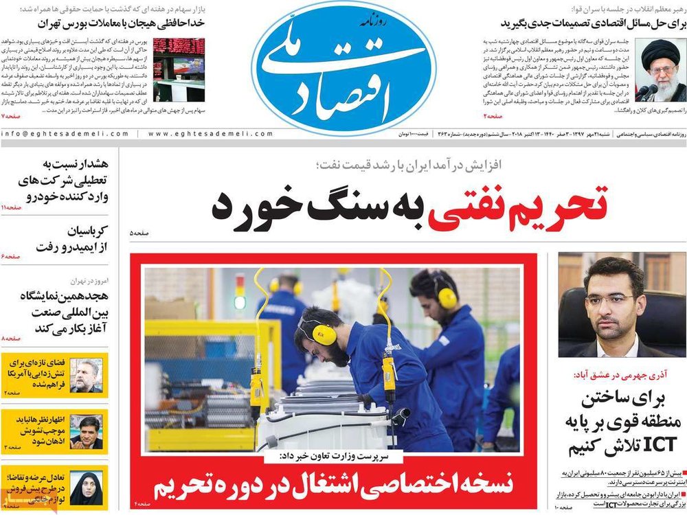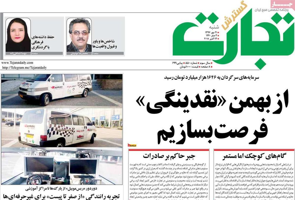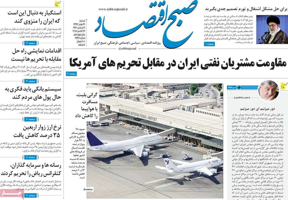 صفحه اول روزنامههای اقتصادی ۲۱ مهر ۹۷