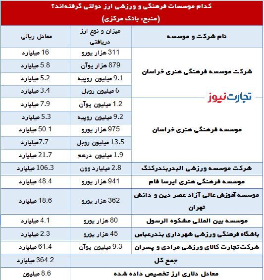 تجارتنیوز برای دریافت پاسخ این سوالات و دریافت اطلاعات اولیه درباره نهادهای متولی موسسات فرهنگی و ورزشی که ارز دولتی گرفتند، از طریق بانکمرکزی اقدام کرده اما تا این لحظه پاسخی از سمت این نهاد دریافت نشده است.